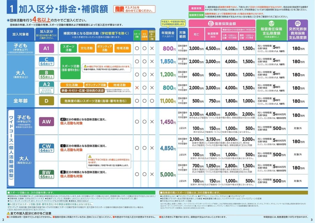 同好会の活動に参加される時に、任意で、スポーツ安全保険に加入できます。加入希望者は、例会時に受付にてご相談ください。